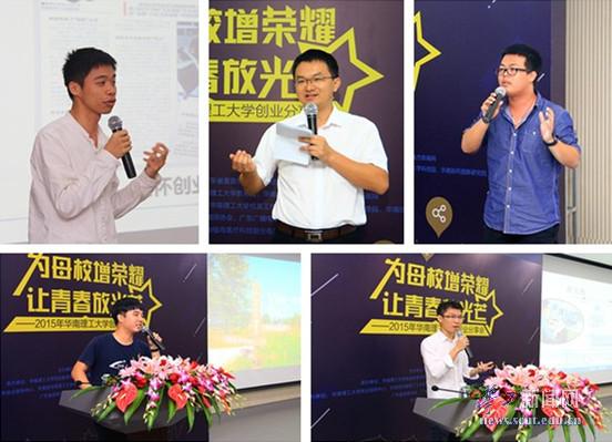 Five young excellent entrepreneurs graduated from SCUT were invited to tell their stories and experiences of creating businesses. They were Hu zhenyu, the founder of China’s first private aerospace service company; Li Zhankeng, the Vice President of Youmi Net; Deng Jiaming, an entrepreneur born in 1995; Hu Dawei and Huang Qipei, two entrepreneurs engaging businesses of environment-friendly products.