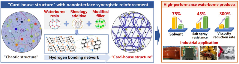 Waterborne coating product with a card-house structure reinforced by nano-interfacial synergy