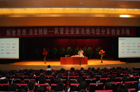 他同时也勉励同学们,必须把握在校学习的宝贵时光,认真学习专业知识,打好坚实的专业基础,积极参加各项集体活动和学生组织的工作,锻炼自己的综合能力和坚强的意志,要养成敢于超越的品质。在以后的工作中必须专心在适合自己的领域里认真工作,甘于吃亏、甘于奉献,虚心学习、学会尊重,勇于创新、敢于超越。之后他用切身体会谈到,一个人必须在做任何事情的时候,注重细节,要不断地学会解放自己的思想、不断地创新自己的工作方法;而作为一个企业,必须建立一个勇于创新的团队、机制和文化,才能超越自己、超越对手,才能立于不败之地;作为一个国家、一个民族,更应该有创新的精神和魄力,无论是经济、政治还是文化,都要在创新中发展、在发展中创新,只有这样,才能不落后于他人,才能屹立于世界。(文/校团委 房俊东 图/任玉辉)