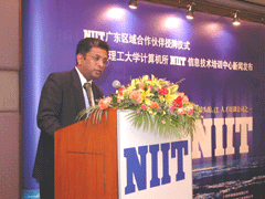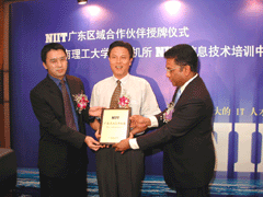 我校电子计算机应用工程研究所与全球最大的信息技术教育培训机构NIIT公司进行合作,成立华南地区首家NIIT公司授权的IT人才培训中心。9月25日下午在花园酒店举行授牌仪式,我校刘焕彬校长、杨晓西副校长及NIIT公司大中国区总裁Prakash